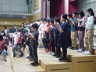 図書館では器楽「ミッキーマウスマーチ」の練習です。